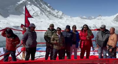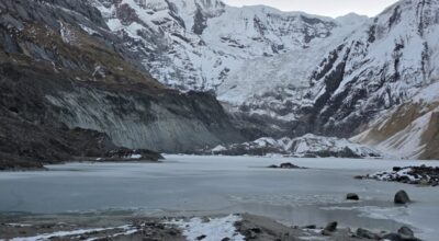 अन्नपूर्ण आधार शिविरमा अवस्थित ‘पञ्चकुण्ड ताल’ चिसोले जम्यो, बरफमा हिँडडुल गर्न पर्यटक आकर्षण
