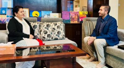 काठमाडौँ, मंसिर २ । सञ्चार तथा सूचना प्रविधिमन्त्री जगदीश खरेलले पूर्वराष्ट्रपति विद्यादेवी भण्डारीसँग भेटवार्ता गरी मुलुकको समसामयिक राजनीतिक अवस्था र आगामी निर्वाचनका तयारीबारे जानकारी गराएका छन्। सोमबार बालुवाटारस्थित निवासमा भएको भेटमा दुवैबीच सरकारको कामकारबाही, राजनीतिक वातावरण, शान्ति–सुरक्षा, तथा आगामी फागुन २१ मा हुने निर्वाचनका विषयमा