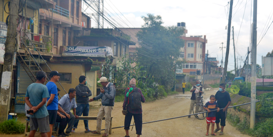 सडक कालोपत्र गर्न माग गर्दै ललितपुरको सुनाकोठीका बासिन्दाले गरे सडक बन्द