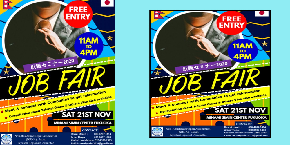 कोभिड १९ का कारण जापानमा पछिल्लो समय काम नपाएर समस्या परिरहेका नेपालीहरुलाई लक्षित गरेर सेमिनार गर्न लागिएको हो । यही नोभेम्बर २१ तारिख बिहान ११ बजेदेखि दिउँसो ४ बजेसम्म मिनामी सिमिन सेन्टरमा सेमिनार आयोजना हुने एनआरएनए क्युस्यु क्षेत्रीय कार्यसमितिले जनाएको छ ।