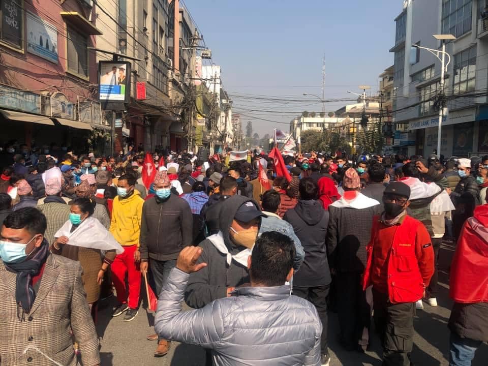 काठमाडौं, पुस १४ । नेपाल कम्युनिष्ट पार्टी (नेकपा) ले मंगलबार सरकारले गरेको प्रतिनिधिसभा विघटनका विरुद्ध देशभर विरोध प्रदर्शन सुरु भएको छ । अहिले काठमाडौंसहित देशका विभिन्न क्षेत्रमा जुलुस निक्लन थालिएको छ ।
