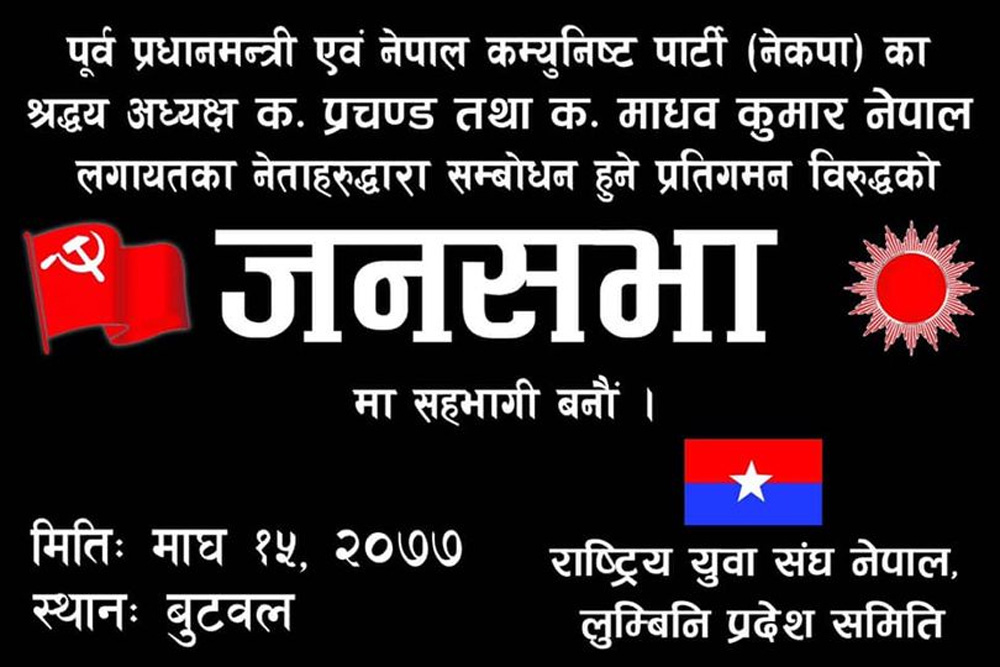प्रतिनिधिसभा विघटनविरुद्ध नेकपाको बुटवलमा विरोधसभा, प्रचण्ड र नेपालले सम्बोधन गर्ने