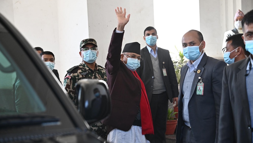 निर्वाचन आयोगमा पुगेर प्रधानमन्त्री ओलीले भने, ‘दलको विवादमा नछिर्नोस्’