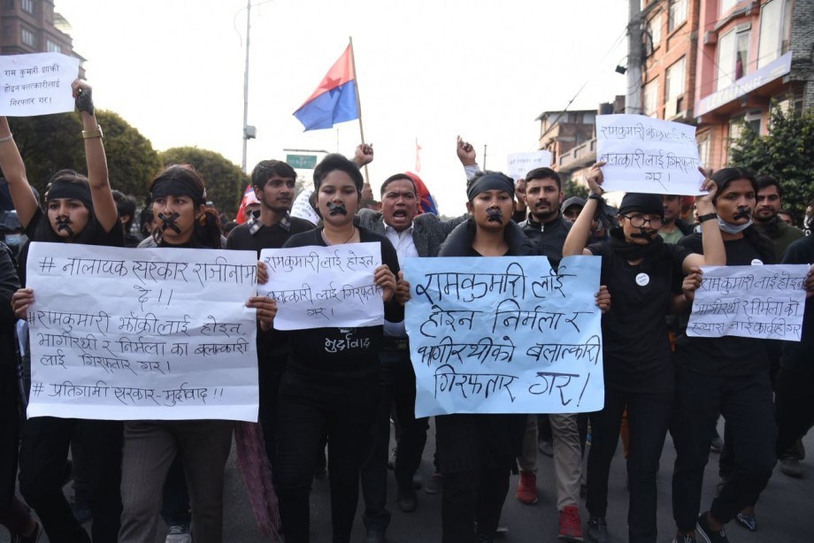 काठमाण्डौं,माघ २९ । नेकपा प्रचण्ड-माधव समुहकी नेतृ रामकुमारी झाँक्रीलाई राष्ट्रपति विरुद्ध बोलेको भन्दै राज्य विरुद्धको कसुर अभियोगमा बिहीवार प्रहरीले निवासबाटै पक्राउ गरिएको बिरोधमा नेकपाका कार्यकर्ताहरु मुखमा टेप लगाएर बिरोध स्वरुप सडकमा उत्रिएका छन् ।