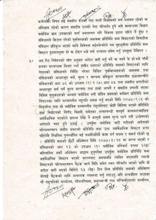साथै सर्वाेच्चले १३ दिनभित्रै संसद् बैठक बोलाउन भनिएको छ ।