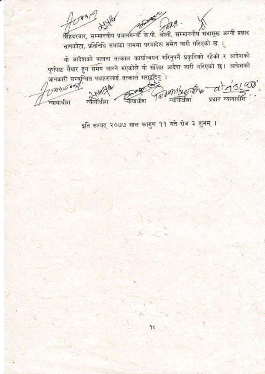 यस्तो छ प्रतिनिधि सभा पुनर्स्थापना गर्ने सर्वोच्चको फैसला [पूर्णपाठ]