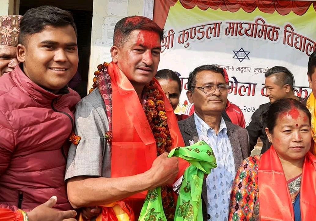 नुवाकोट,फागुन १६ । जिल्लाको पञ्चकन्या गाउँपालिका वडा नम्बर ५ भद्रुटारको कुण्डला माध्यमिक विद्यालयको विद्यालय व्यवस्थापनको अध्यक्षमा पुनः रामेश्वर थापा चयन भएका छन्। यसअघि थापा चार वर्ष समितिको अध्यक्षका रुपमै सेवारत थिए।