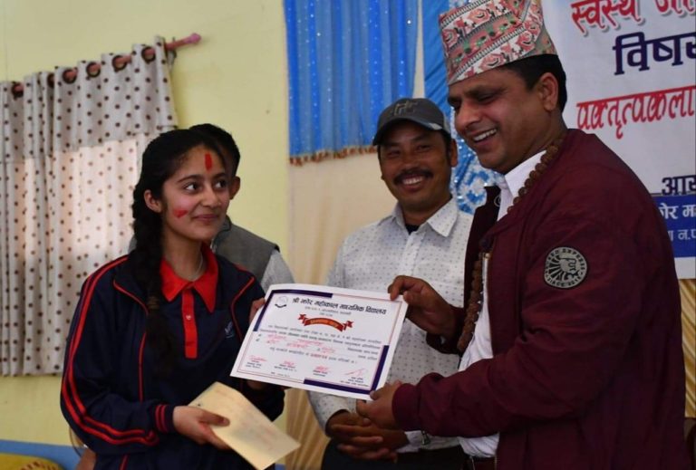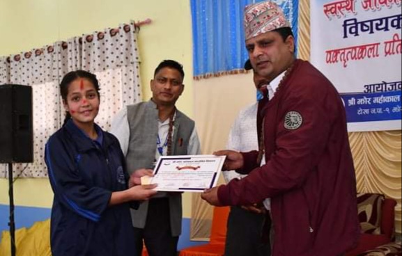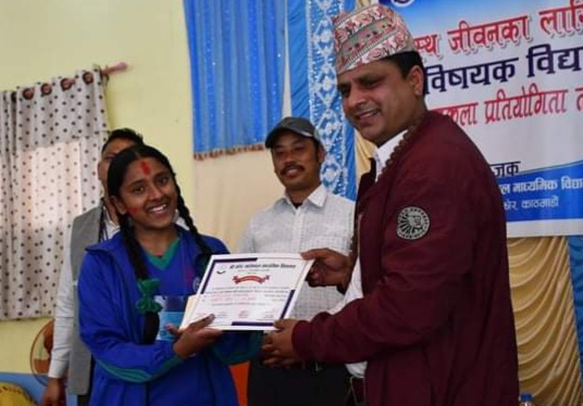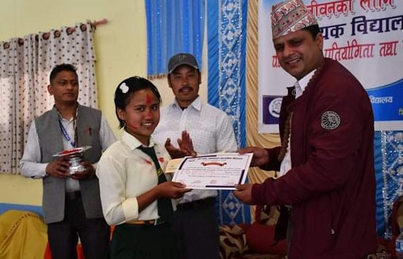 कार्यक्रममा वडा अध्यक्ष अधिकारीले प्रतियोगितामा उत्कृष्ट ४ विद्यालयका ४ विद्यार्थीलाई नगद क्रमश ५ हजार,३ हजार, २ हजार र १५ सयसहित प्रसंशापत्र प्रदान गरेका थिए।
