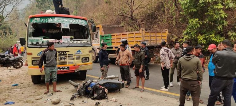 सिन्धुपाल्चोकमा बसले मोटरसाइकललाई ठक्कर दिँदा एक जनाको गयो