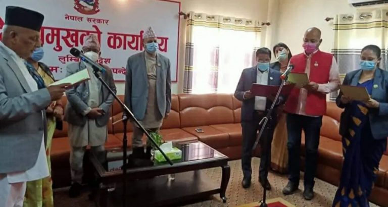 सोमबार लुम्बिनी प्रदेश सरकारविरुद्ध नेपाली कांग्रेस, नेकपा माओवादी केन्द्र र जसपाका सांसदले अविश्वास प्रस्ताव दर्ता गरेका थिए । तर अविश्वास प्रस्ताव दर्ता गरेको केहीबेरमा जसपाका ४ जना नेताहरु मन्त्री नियुक्त भएका थिए।