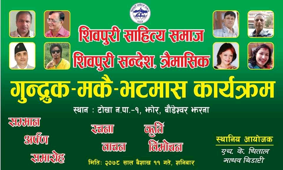 कार्यक्रम वरिष्ठ साहित्यिक पत्रकार डाक्टर तुलसी प्रसाद भट्टराईको प्रमुख आतिथ्यतामा हुनेछ। कार्यक्रममा विष्णुपुष्पा साहित्यिक पत्रकारिता सम्मान – गोर्खे साहिलो – चितवन – २०७६, निवन्ध आचार्य – २०७७ र शिवपुरी गजल सम्मान, प्रकाश घायल – २०७६, रावत – २०७७ प्रदान गरिनेछ।