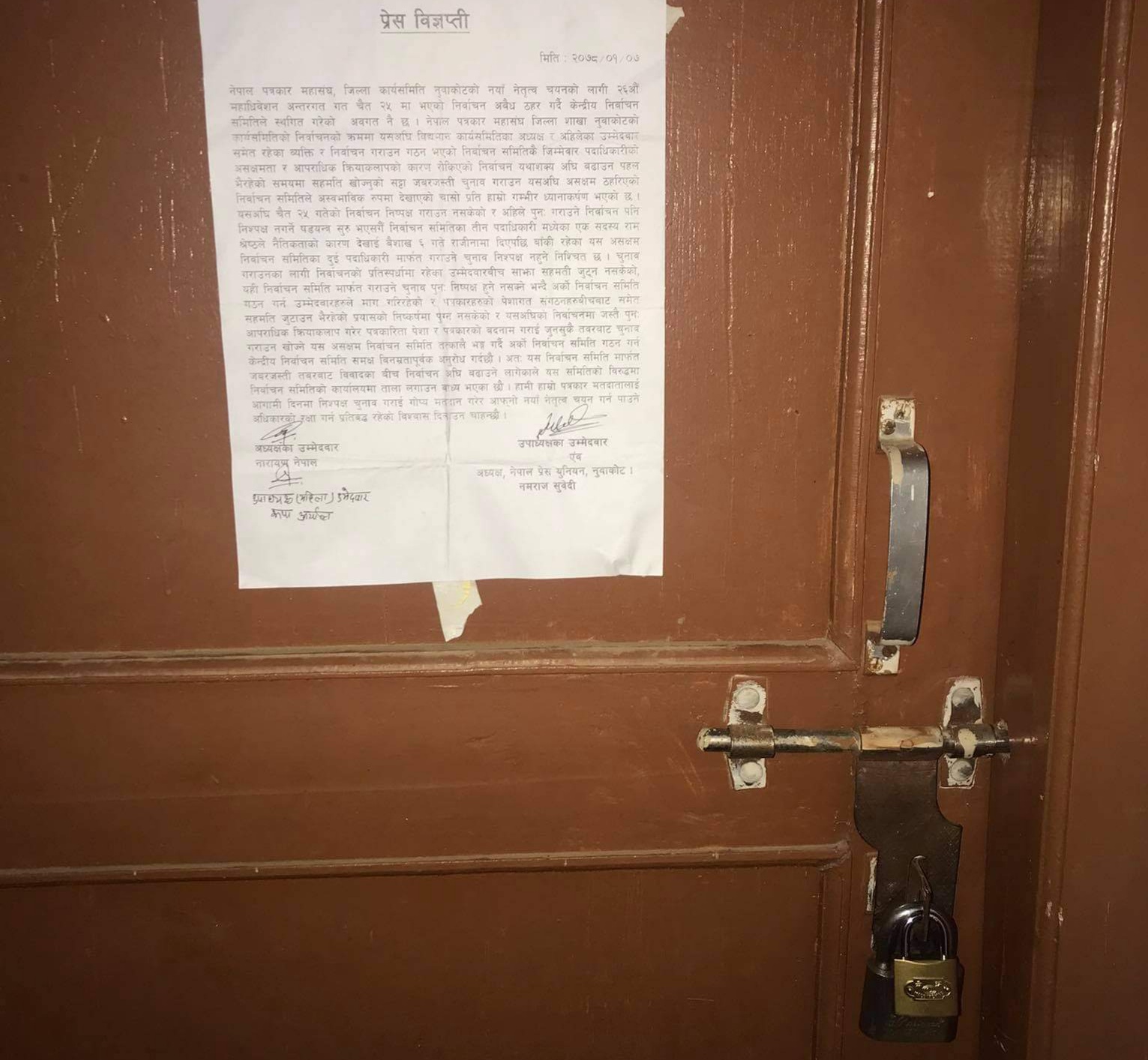 पत्रकार महासंघ नुवाकोटमा लाग्यो तालाबन्दी, के निर्वाचन होला?