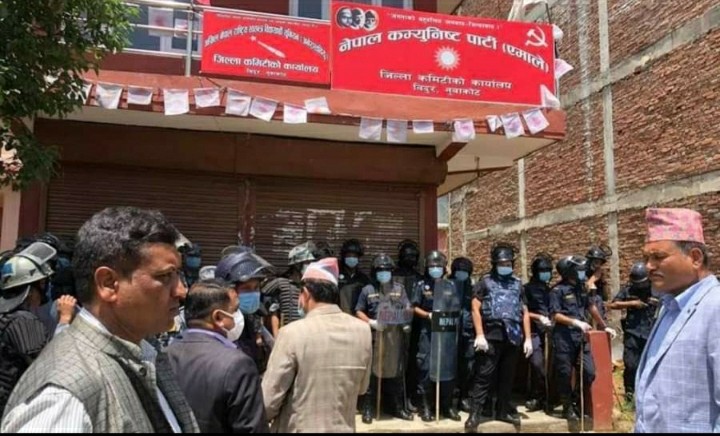 नेकपा एमाले पार्टी कार्यालय नुवाकोटमा दिनभर तनाव