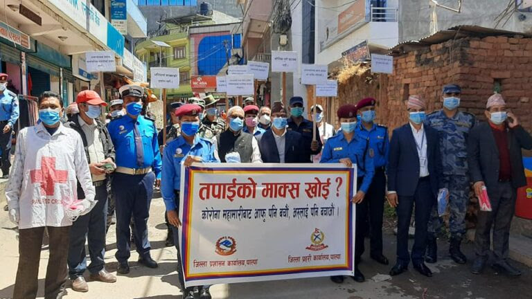 टाेलीले प्रशासन, सिल्खान, लहरेपिपल, बसपार्क, टूँडीखेल लगायतका स्थानमा तपाइकाे मास्क खाेइ भन्दै मास्क नलगाउनेलाइ मास्क दिएर काेराेना विरुद्धकाे सचेतना फैलाएकाे थियाे ।