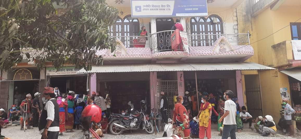 प्युठान,वैशाख १६ । जिल्लाको सरुमारानी गाउँपालिका- २ दर्भानस्थित ज्योती विकास बैंकमा ज्येष्ठ नागरिकहरुको भीड देखिन्थ्यो ।