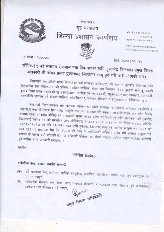नुवाकोटमा एक साता निषेधाज्ञा हुने