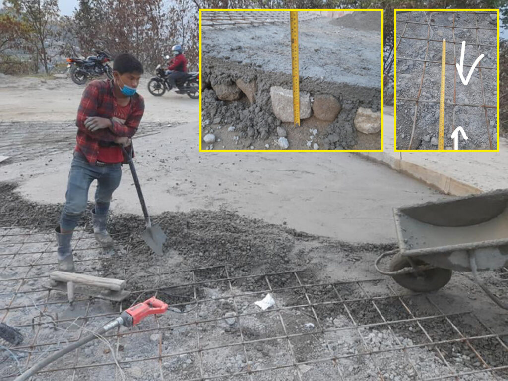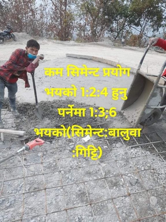 त्यस्तै ढलानमा गिट्टी प्रयोग गर्नुपर्नेमा पेबल प्रयोग गरेको (पेबल क्रसरको खेर जाने माल हो, जुन क्रसरले नकुटी निकाल्ने गरिन्छ), ढलान कम गरेको तर उचाई पुर्याउनका लागि ढुङ्गाको सोलिङ बढी गरेकोजस्ता कैफियत भेटिएको हो । ‘धमिलो पानीमा माछा मार्ने’ उक्तिलाई सावित हुनेगरी निषेधाज्ञा जारी भएको बेला प्राविधिक र निर्माण व्यवसायी बीचको मिलेमतोमा सडक सुधारमा हेलचेक्र्याइँ गरेको स्थानीयको आरोप छ ।