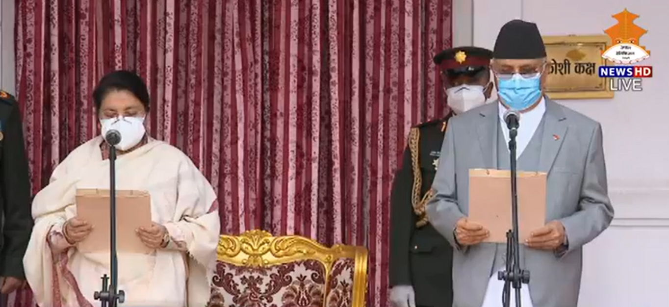 राष्ट्रपतिको कार्यालय शीतलनिवासमा आयोजित एक विशेष समारोहमा राष्ट्रपति विद्यादेवी भण्डारीले प्रधानमन्त्री ओलीलाई पद तथा गोपनीयताको सपथ गराएकी हुन ।