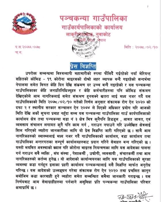 गाउँपालिकाद्वारा जारी प्रेस बिज्ञप्ती