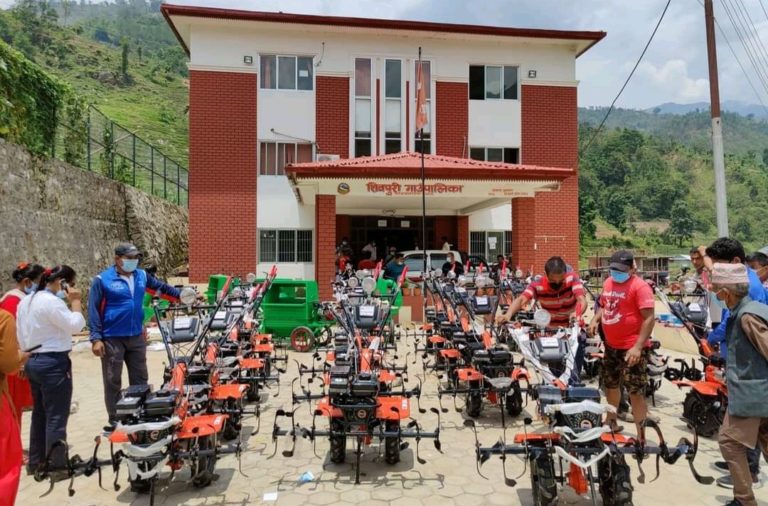 नुवाकोट,जेठ २९ । पछिल्लो समय आधुनिक कृषिसामग्री र प्रविधि तर्फ अभ्यस्त हुन थालेका नुवाकोट शिवपुरीका किसानलाई गाउँपालिकाले ट्याक्टर वितरण गरेको छ ।गाउँपालिकाले शुक्रबार आफ्नो सेवा क्षेत्रका किसानलाई ट्र्याक्टर वितरण गरेको हो । गाउँपालिकाको आर्थिक सहयोगमा २५ वटा ट्याक्टर र ३ वटा थ्रेसर वितरण गरिएको गाउँपालिकास्थित कृषि शाखाका उज्ज्वल थपलियाले बताए । ट्याक्टर वितरण कार्यक्रममा गाउँपालिकाका अध्यक्ष रामकृष्ण थापा र उपाध्यक्ष मन्जु केसीको समेत उपस्थिति रहेको थियोे ।