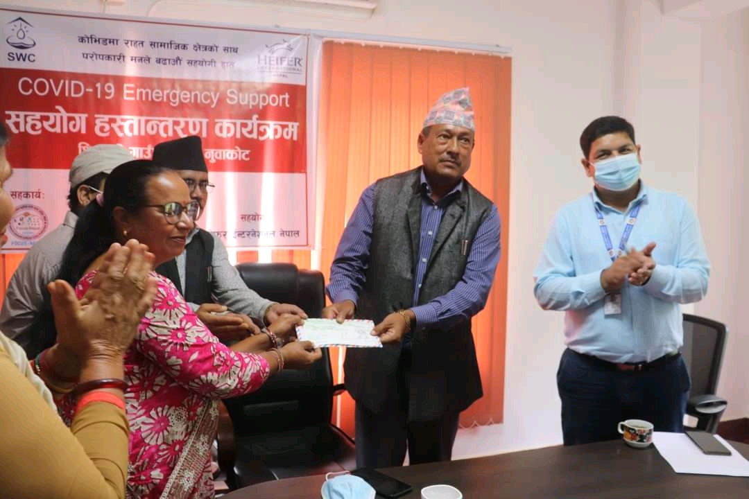 नुवाकोट,असार १ । हेफर ईन्टरनेशनल नेपाल नामक गैरसरकारी संस्थाले शिवपुरी गाउँपालिकालाई आर्थिक सहयोग गरेको छ। कोभिड नियन्त्रणका लागि संस्थाले ४ लाख रुपैयाँ रकमको चेक सहयोग गाउँपालिका अध्यक्ष रामकृष्ण थापालाई हस्तान्तरण गरेको हो ।