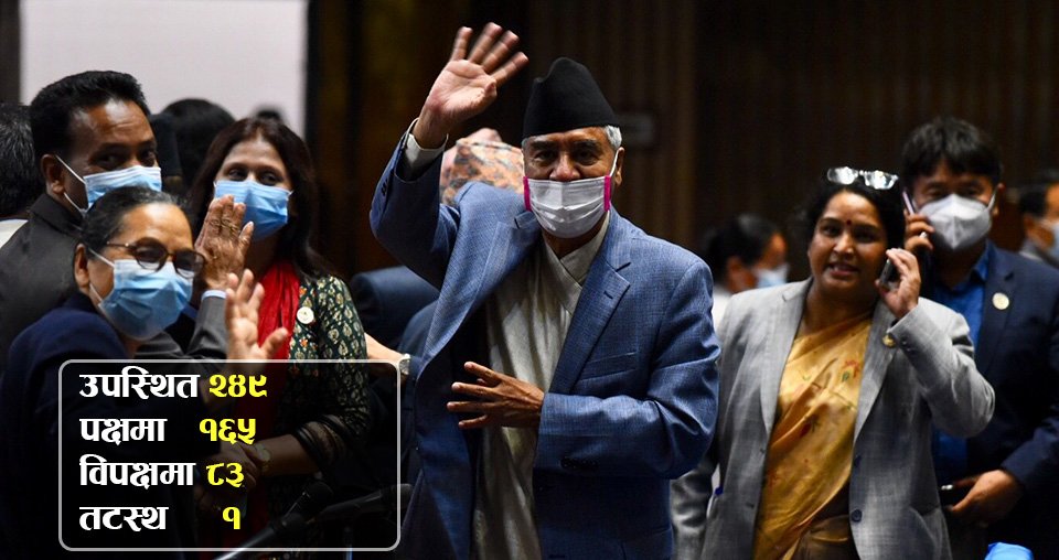 प्रधानमन्त्री देउवालाई विश्वासको मत प्राप्त