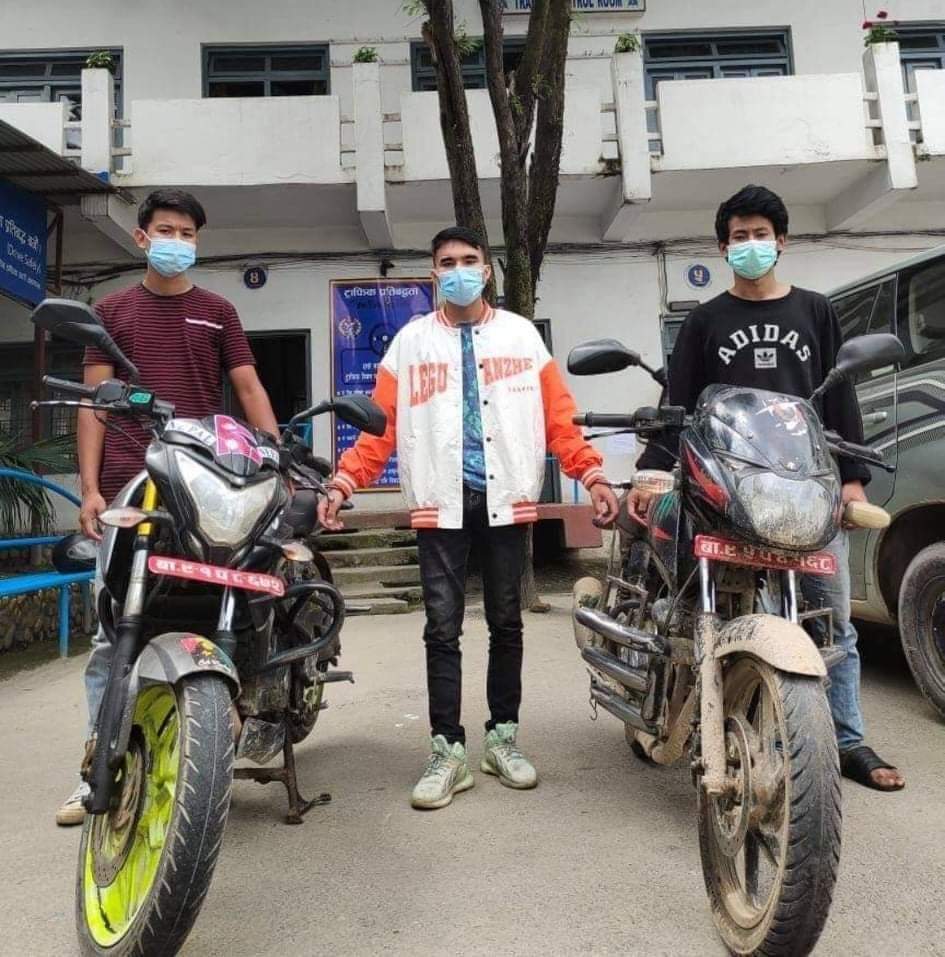 पक्राउ पर्नेमा भक्तपुर सरस्वतीखेलका बासुदेव खड्काको आफ्नै घर अगाडिबाट २०७६ सालमा हराएको उक्त मोटरसाइकल सहित रामेछाप घर भई भक्तपुर बस्ने बर्ष १९ को दिपेन्द्र भुजेल र ताप्लेजुङ्गका १९ बर्षे बिशेष लिम्बु रहेको ट्राफिक प्रहरी प्रमुख एसएसपी जनक भट्टराईले बताए ।