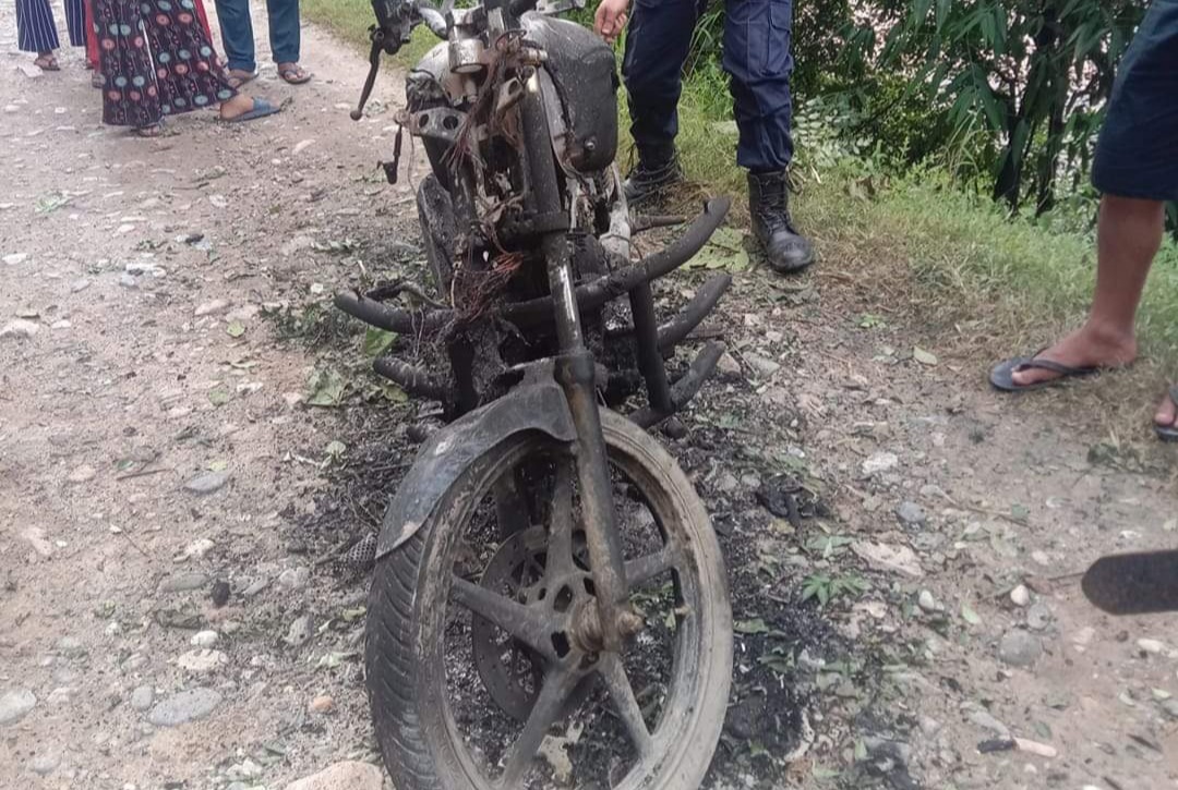 प्युठान नगरपालिका – ९ मरन्ठानाका २६ बर्षीय रबिन्द्र सुनारको लु ९ प ६६३० नम्वरको मोटरसाईकलमा शनिबार अपरान्ह एक्कासी आगो लागेको हो।बिजुवारबाट मरन्ठानास्थित घर तर्फ जाँदै गर्दा कोचेन भन्ने स्थानमा सडकमा गुडिरहेको अबस्थामा आफ्नो एमा ग्लाडिटर मोटरसाईकलमा आगलागी भएको सुनारले बताए ।