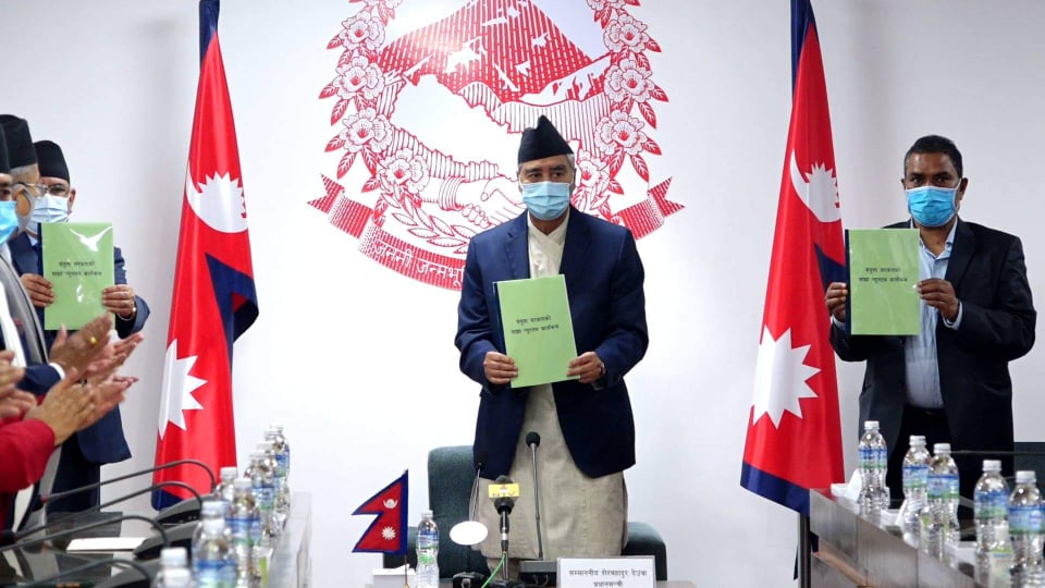 काठमाडौं, साउन २५ । सरकारले नीति, योजना र कार्यक्रम समेटिएको न्यूनतम साझा कार्यक्रम घोषणा गरेको छ । ११ बुँदे प्राथमिकता र १० बुँदे नीति तथा कार्यक्रमसहित सरकारको न्यूनतम साझा कार्यक्रम घोषणा गरिएको हो ।