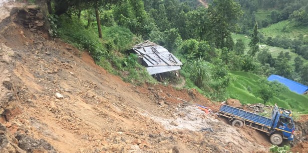 छहरे-टोखा सडकखण्ड अवरुद्ध, पहिरोले मिनिट्रक बगायो