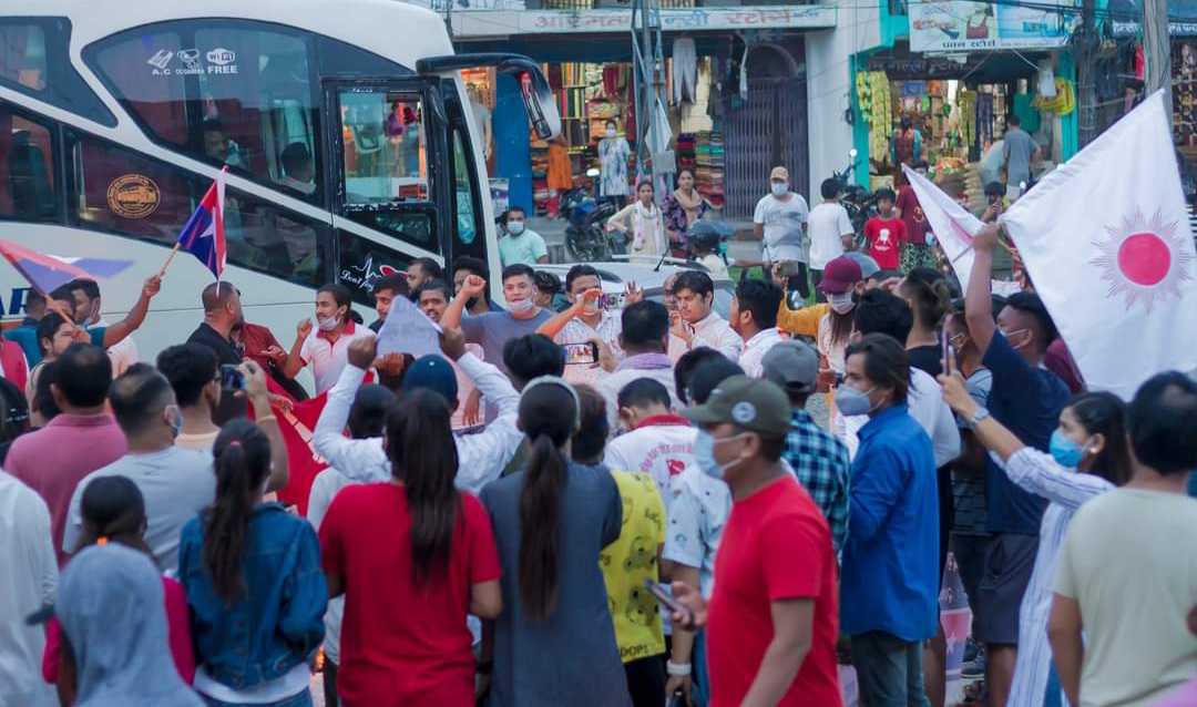 राष्ट्रिय युवा संघ नेपाल दवदह नगरको आयोजनामा भएको प्रर्दशनमा गठबन्धन सरकारका विरुद्ध चर्का नारा लगाएका थिए । उनिहरुले उक्त अध्यादेश तुरुन्त फिर्ता गरी असंवैधानिक कार्यहरु समेत फिर्ता गर्न जोडदार माग गरेका थिए ।