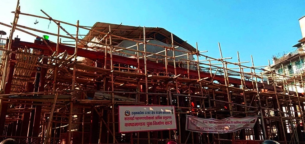 २०७२ सालको भूकम्पबाट क्षतिग्रस्त काष्ठमण्डपको मुख्य पूर्वाधार (सुपर स्ट्रक्चर) को काम सम्पन्न भई अहिले ‘फिनिसिङ’ कार्य भइरहेको काष्ठमण्डप पुनर्निर्माण समितिले जनाएको छ ।