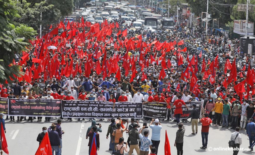 एमसीसीविरुद्ध विप्लवको पार्टीको विरोध सभा सुरु