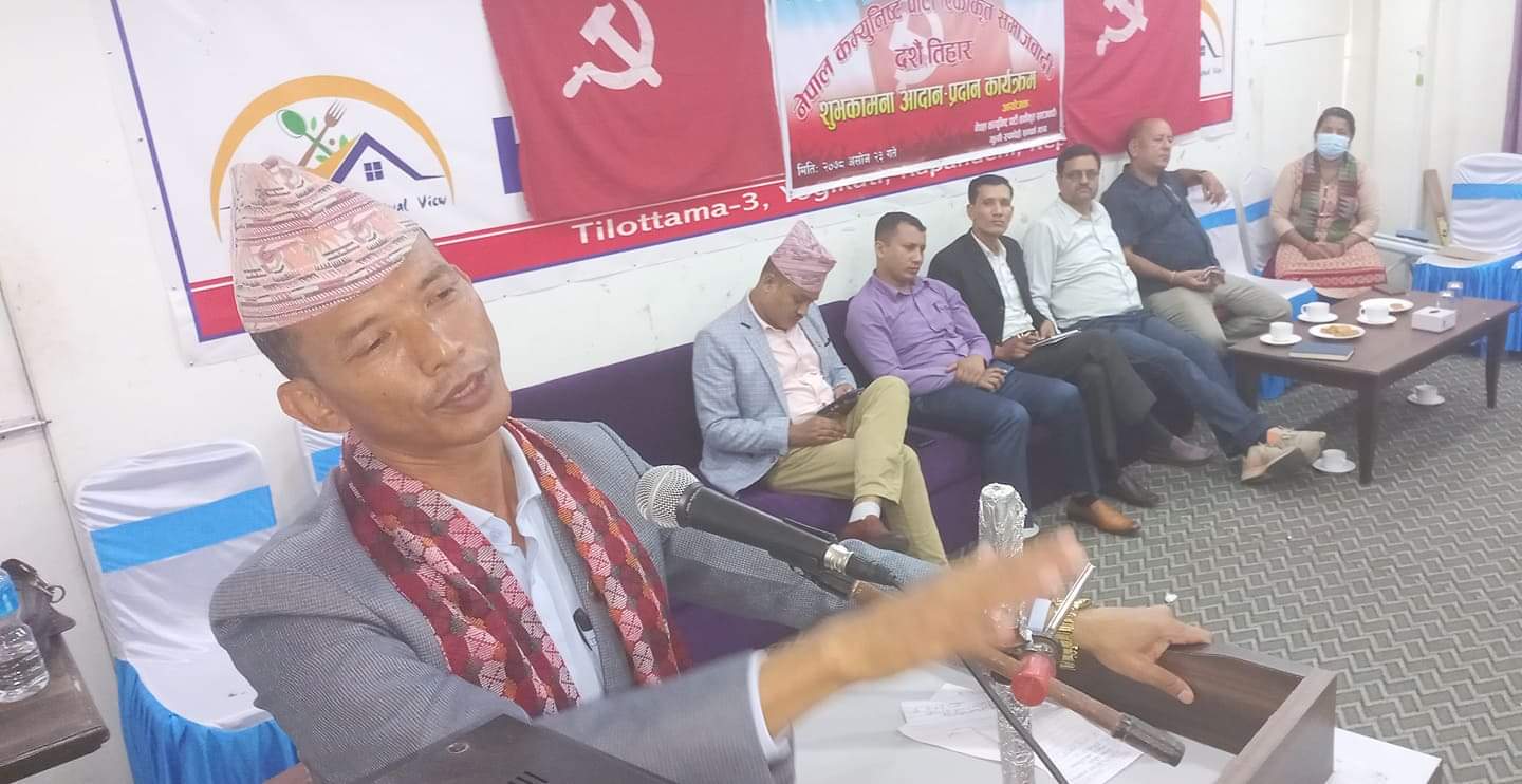 वुटवल,असोज २३ । नेपाल कम्युनिस्ट पाटी एकीकृत समाजवादी पाटीका केन्द्रीय सदस्य मेटमणि चाैधरीले कम्युनिस्ट पाटी जाेगाउनका लागि विद्राेह गरेकाे वताएका छन । नेपालमा हिजाे कम्युनिस्ट पाटी भनेर चिनिएकाे एमाले पछिल्लो समय वली कम्पनी पाटीमा रुपान्तरण भएपछि आफुहरुले विद्राेह गरेर नयाँ पाटी दर्ता गरेकाे बताए । एकीकृत समाजवादी गुल्मी-रुपन्देही सम्पर्क मञ्चले आयाेजना गरेकाे शुभकामना आदानप्रदान कार्यक्रमलाई सम्बाेधन गर्दै नेता चाैधरीले आफुहरु एमालेमै रहेर पनि कम्युनिस्ट आन्दोलन र कम्युनिस्ट पाटी जाेगाउने कुनैपनि आधार नभएको उनले दावी गरे ।