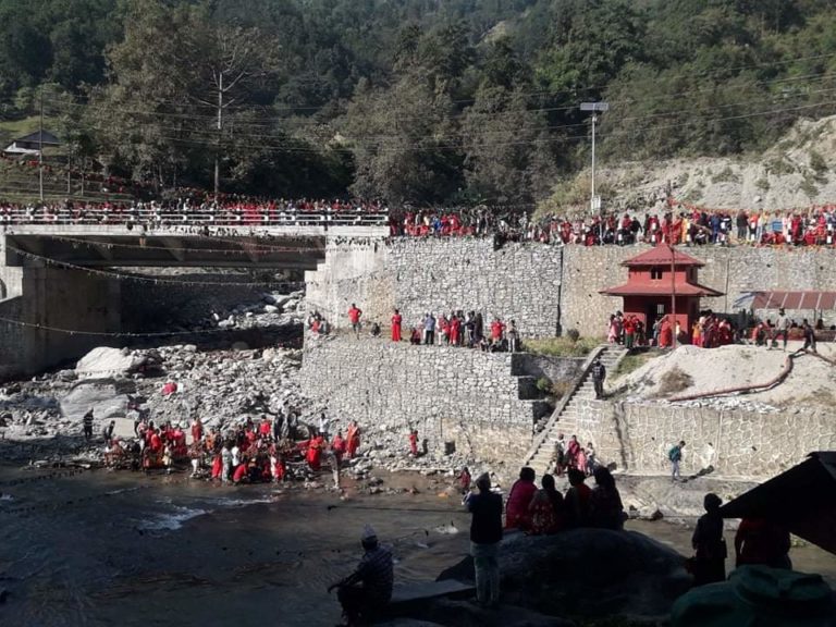 गत वर्ष भन्दा उल्लेख्य स्थानीयको उपस्थिति रहेको यस् वर्षको मेलामा झ्याउरे र लोकोन्मुख खैचडीभाकामा बाटोभरी नाचगान गर्दै आाएको लावालस्करले स्थानीयको ध्यान तानेको देखिन्थ्यो । उनीहरु डोलीमा घुम्टो ओढेर सजिएकी बेहुलीसँगै आएका जन्ती झैँ लाग्थे । तर त्यो बेहुली नभएर नदी तार्न फूलको डोली बोकेर आएका भक्तहरुको लावालस्कर थियो ।