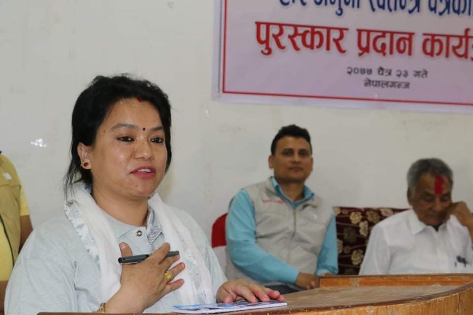 काठमाडौं,मंसिर १० । नेपाल इभेन्ट अग्रनाइजेशन एशोसिएसनले नेपालगन्जकी माधवी शाह नेशनल हिरो अवार्ड–२०७८ बाट सम्मान गरेको छ । कोभिड–१९ महामारीमा आफ्नो ज्यानको प्रवाह नगरी सामाजिक कार्य गरेको भन्दै शाहलाई पनि सम्मान गरेको हो ।