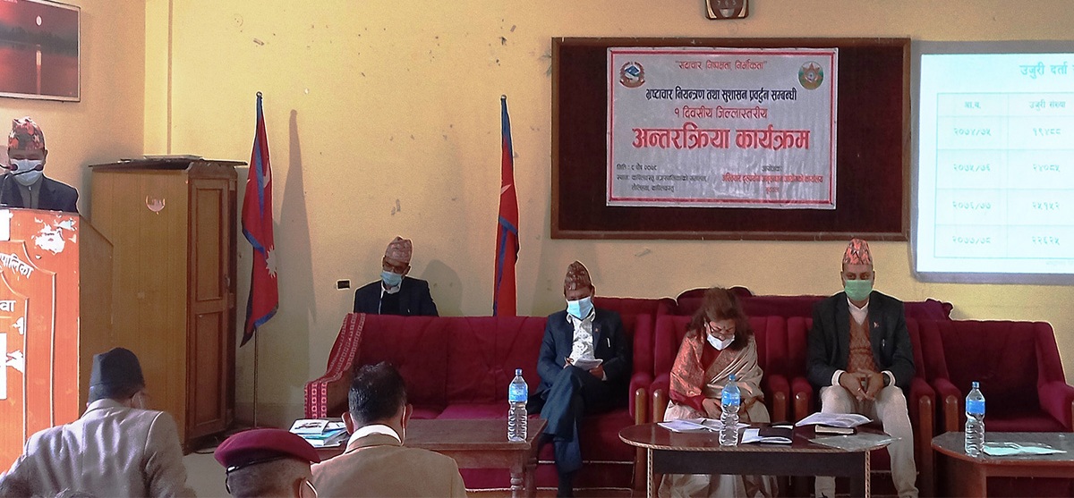 उनले अख्तियारले भ्रष्टाचारको अनुसन्धानकाक्रममा कागजपत्रहरु मागिए पनि समयमा उपलब्ध नगराइएकाले प्रमाण नष्ट हुने सम्भावना बढेको बताइन् । उनले अबदेखि तोकिएको समयमा कागजपत्र उपलब्ध नगराइए कारबाही गर्ने चेतावनी समेत दिइन् । उनले अख्तियारमा स्थानीय तहका मात्रै ३० हजार उजुरी परेको बताइन् । सो अवसरमा जिल्ला समन्वय समितिका प्रमुख नारायण खनालले अहिले स्थानीय तहमा भ्रष्टाचार मौलाएको बताए । उनले स्थानीय तहमा भएको भ्रष्टचार रोक्न निकै चुनौती रहेको भन्दै कर्मचारीले जनप्रतिनिधिको दबावमा नभई नियमपूर्वक काम गर्नुपर्ने बताए । उनले वडाहरुमा उपभोक्ता समितिमा गठन गर्दा भाई भतिजाहरुलाई राख्ने गरिएकोमा यस तर्फ पनि विचार पु¥याउनु पर्ने बताए ।