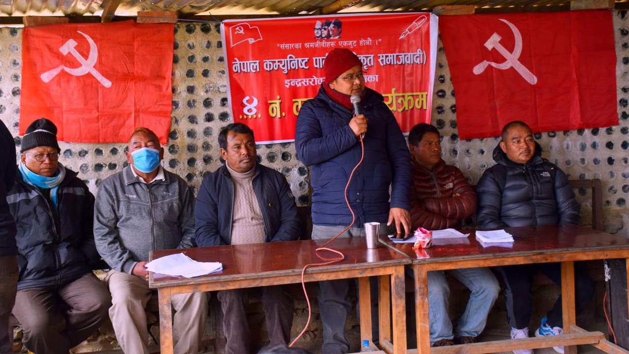 नेकपा (एकिकृत समाजवादी)का जिल्ला उप सचिव तथा इन्द्रसरोवर गाउपालिका इन्चार्ज जीवन लामाको प्रमुख आतिथ्यतामा कार्यक्रम सम्पन्न भएको हो । कार्यक्रममा मकवानपुर जिल्ला कमिटी सदस्य तथा इन्दसरोवर गाउपालिका कमिटी उपाध्यक्ष प्रेम पाख्रिन(राजेश) ले स्वागत मन्तव्य राख्नुभएको थियो । कार्यक्रमा जिल्ला सचिवालय सदस्य तथा इन्द्रसरोवर गाउपालिका कमिटी अध्यक्ष कुन्साङ्ग लामा, जिल्ला सचिबालय सदस्य तथा इन्द्रसरोवर गाउपालिका कमिटी सचिब धनराज महर्जन लगायत अन्य अतिथीहरुले मन्तव्य राख्नु भएको थियो ।