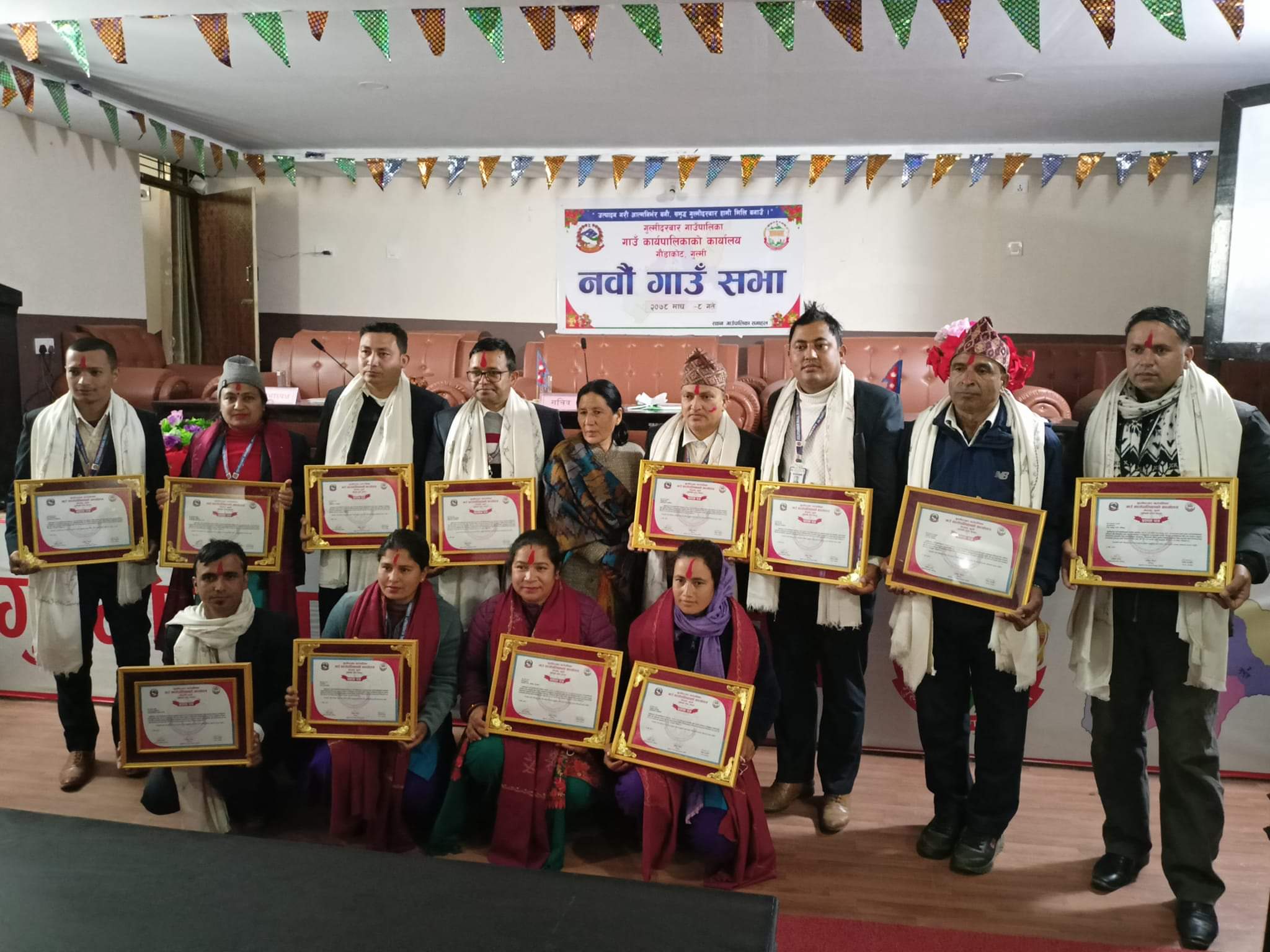 गाउँपालिका भित्र रहेका बिभिन्न कार्यालयहरुमा उत्कृष्ट कार्यसम्पादन गर्नेलाई सम्मान गरेको हो । सम्मानित हुनेहरुमा प्रमुख प्रशासकीय अधिकृत पाण्डे, सामाजिक विकास शाखा प्रमुख नवराज घिमिरे, स्वास्थ्य संस्थाहरुको तर्फबाट जुनकला बस्नेत, प्रधानाध्यापकहरुको तर्फबाट नेत्रप्रसाद ज्ञवाली, आधारभूत प्रधानाध्यापकहरुबाट पार्वती बस्नेत रहेका छन् ।