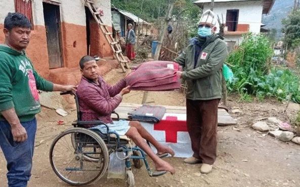 रेडक्रसद्धारा विपन्न परिवारलाई कम्बल वितरण