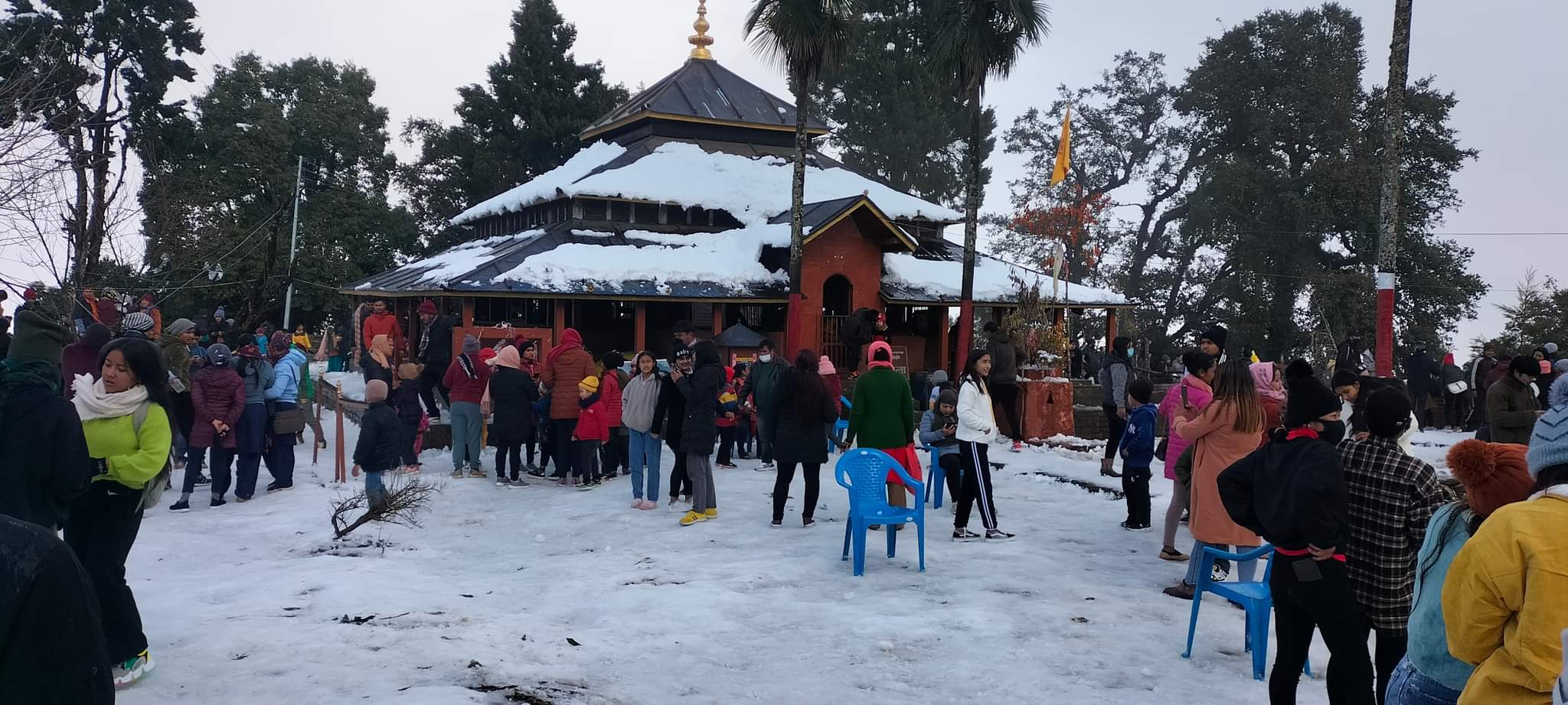 गुल्मीको रेसुङ्गामा हिउँ खेल्नेको लर्को