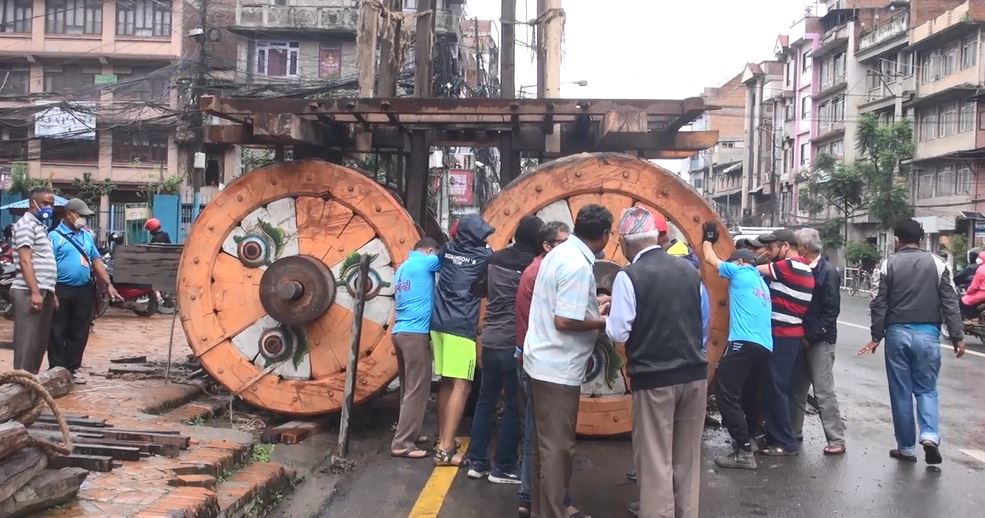 दशकौँदेखि जावलाखेलमा थन्क्याइएका ती पुराना पाङ्ग्राले अब रथको भार थेग्न सक्दैनन् । केही वर्षअघि स्थान अभाव भएकाले पुल्चोकमा राखिएका आठवटा पाङ्ग्रालाई नष्ट गरिएको थियो । रथको सबैभन्दा तल प्रयोग हुने ३२ हातका मोटा काठ (धमा) पनि थन्क्याइएका छन् । जावलाखेलमा एउटा र पुल्चोकमा चारवटा पुराना धमा बेवारिसे छन् ।