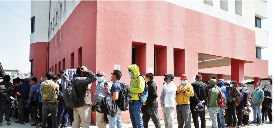 काठमाडौ,चैत १ । सरकारी सेवालाई ‘डिजिटल’ बनाउने भनिए पनि सवारीचालक अनुमतिपत्र (लाइसेन्स) नवीकरणको फाराम बुझाउन मात्रै नौ घण्टा लाममा लाग्नुपर्ने अवस्था छ ।एकान्तकुनास्थित यातायात व्यवस्था कार्यालयमा चालक अनुमतिपत्र नवीकरण गर्न जाने सेवाग्राहीले ‘टोकन’ लिन, बैङ्कमा राजस्व जम्मा गर्न र फाराम बुझाउन मात्रै कम्तीमा नौ घण्टा लाग्छ । त्यहीमाथि दैनिक बाँडिने दुई सय ‘टोकन’ हात पार्न बिहान सखारै यातायात कार्यालय पुगेर लाम कुर्नुपर्ने अवस्था छ । लाइनमा दिउँसो ३ः३० बजे भेटिनुभएका रौतहट वसन्तपुरका बालकिशोर साहले भन्नुभयो,