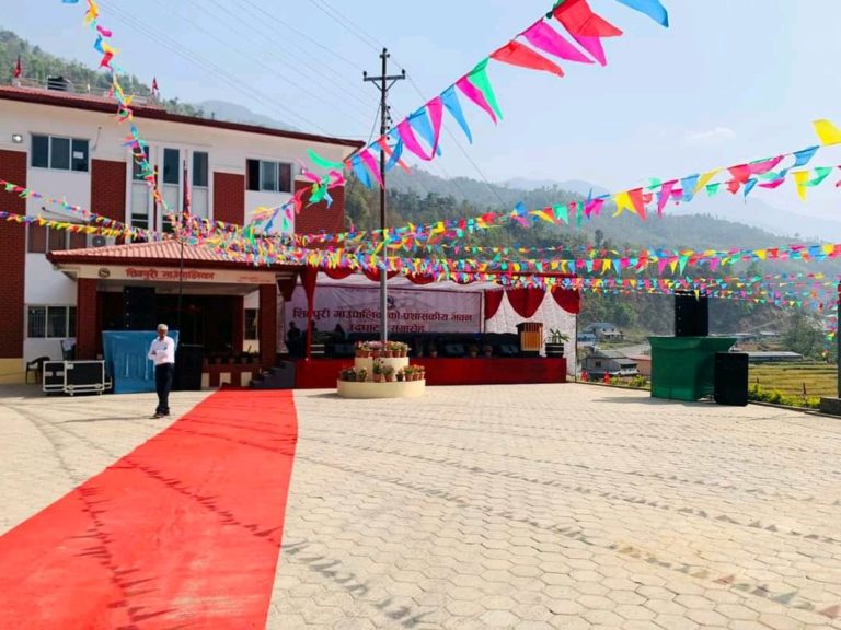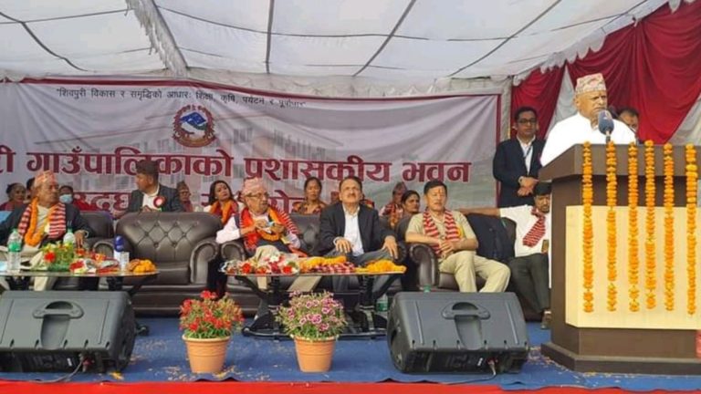 झण्डै दुई वर्ष अगाडि निर्माण सम्पन्न भएको गाउँपालिकाको प्रशासकीय भवन उद्घाटन गर्न पूर्व राष्ट्रपति यादवसहित विभिन्न राजनीति दलका नेताकार्यकर्ताहरु शनिबार नुवाकोटको शिवपुरी गाउँपालिका पुगेका हुन।