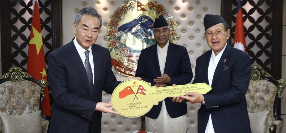 काठमाडौ,चैत १३ । चीन सरकारद्वारा निर्मित पोखरा अन्तर्राष्ट्रिय विमानस्थल शनिबार नेपाल सरकारलाई हस्तान्तरण भएको छ। प्रधानमन्त्री शेरबहादुर देउवाको उपस्थितिमा चिनियाँ विदेशमन्त्री वाङ यीले शनिबार विमानस्थलको साँचो परारष्ट्रमन्त्री डा. नारायण खड्कालाई हस्तान्तरण गर्नुभएको हो।