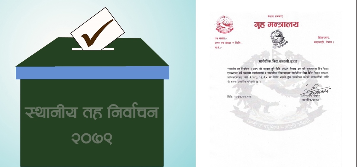 काठमाडौ,वैशाख २६ । स्थानीय तहको चुनावका दिन सरकारले सार्वजनिक बिदा दिएको छ । यही वैशाख ३० गते स्थानीय चुनाव हुँदैछ ।