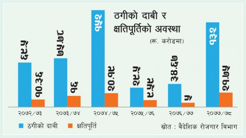 विभागका महानिर्देशक शेषनारायण पौडेल सामान्य लेनदेनको विवाद र रिसइबीलाई समेत वैदेशिक रोजगार ठगी दाबी गर्ने क्रम बढेको बताउँछन् । वैदेशिक रोजगार ऐन २०६४ मा वैदेशिक रोजगारीको नाममा ठगेको पुष्टि भए पीडितले बिगोमा ५० प्रतिशत थपेर क्षतिपूर्ति पाउने प्रावधान छ ।
