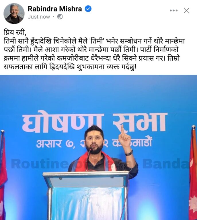 रवि लामिछानेप्रति रबिन्द्र मिश्रको सहानुभूति मिश्रित सन्देश