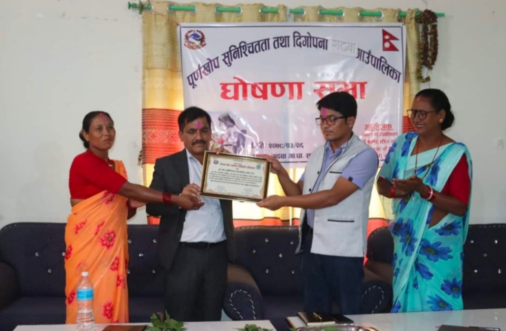 त्यस्तै पूर्ण खोप सुनिश्चितता कार्यक्रममा जिल्ला समन्वय समितिका उपप्रमुख चेतना चौधरी,गढवा गाउँपालिकाका उपाध्यक्ष शारदा चौधरी,वडा अध्यक्ष, स्वास्थ्य चौकीका प्रमुखहरुको सहभागिता थियो । कार्यक्रममा गढवाका ८ वटै वडा कार्यालयलाई पूर्ण खोप सुनिश्चित भएको प्रमाणपत्र हस्तान्तरण गरिएको छ ।
