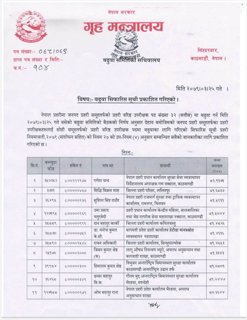 यी हुन् नेपाल प्रहरीका एसपीबाट एसएसपीमा बढुवा भएका ३२ जना